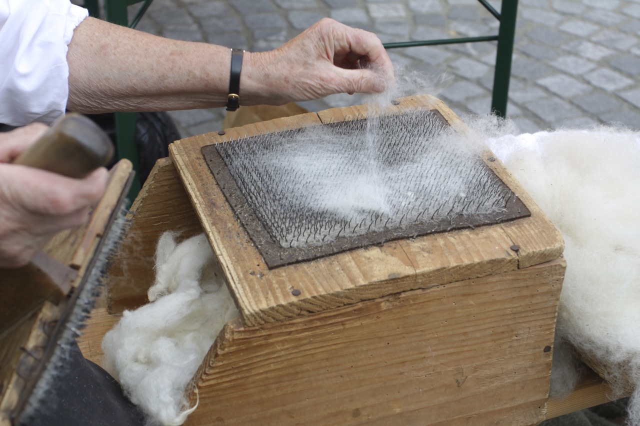 Les couleurs naturelles de la laine fournissent le gris et les marrons, que l'on obtenait également à partir du brou de noix.