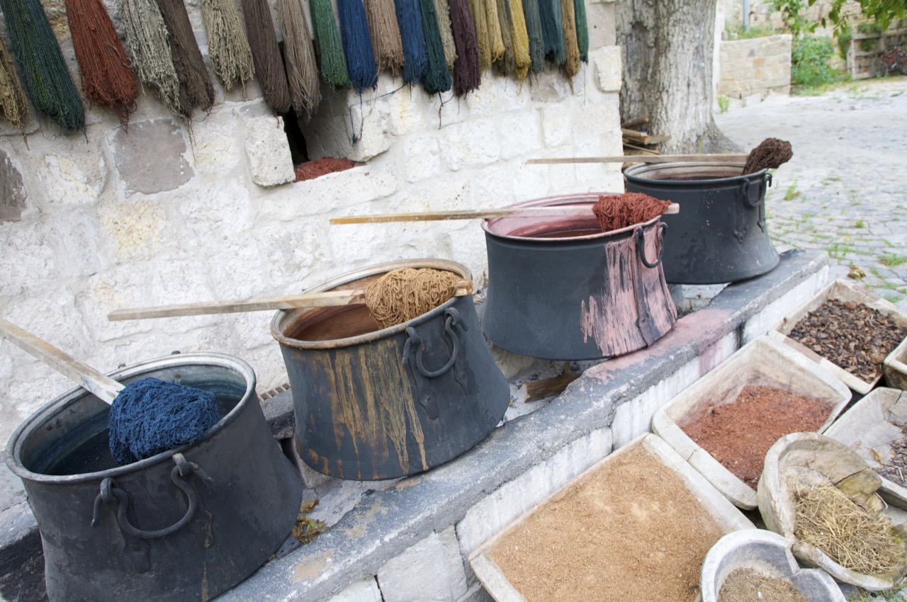 La teinture à l'aide de colorants naturels dépend donc de l'adresse et de la science des teinturiers mais le genre de mordant utilisé ainsi que la composition de l'eau et sa dureté exercent également une influence sur la teinture.