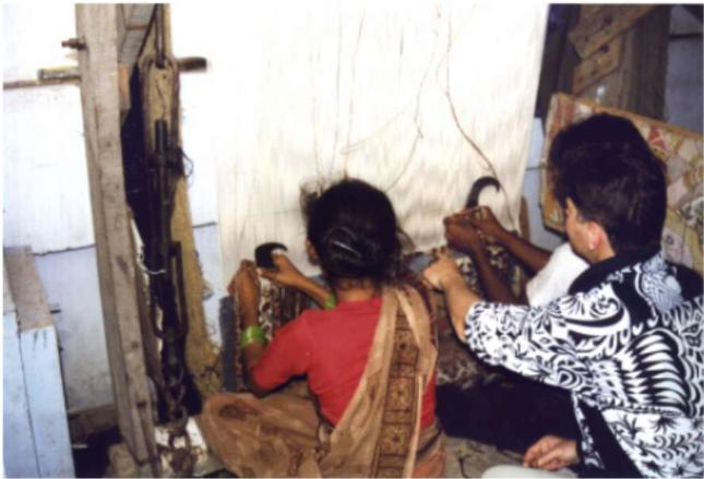 Aussi loin que remontent les souvenirs, les femmes, partout en Asie, ont toujours tissé des tapis chez elles. Les fillettes apprennent cette technique dès qu'elles ont une certaine dextérité manuelle. Généralement, elles font leurs premiers essais sur des métiers à tisser en miniature. Lorsqu'elles sont devenues suffisamment expertes, elles commencent à travailler aux côtés de leur mère, de leur grand-mère ou d'autres membres de leur famille et elles apprennent à réaliser les motifs. À dix ans, elles sont devenues des ouvrières compétentes mais il ne s'agit là, bien sûr, que d'un seul stade de la fabrication d'un tapis. Il leur faudra encore acquérir les autres aptitudes nécessaires : triage de la laine, démêlage, tordage, montage des fils de la chaîne sur le métier et tonte des poils du tapis terminé. Une fois qu'elles maitrisent tous ces procédés, elles sont capables de réaliser entièrement un tapis sans sortir de chez elles. À cet égard, en terme de techniques de base, les tisserandes, qu'elles soient tribales ou artisanales, sont dans la même situation. C'est pourquoi les diverses phases de la réalisation d'un tapis sont valables pour les unes comme pour les autres. La principale différence réside dans le type de métier employé. Dans l'industrie artisanale, il s'agit d'un métier vertical, tandis que les nomades préfèrent un métier horizontal.