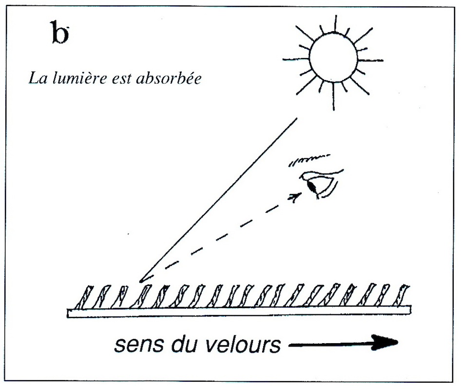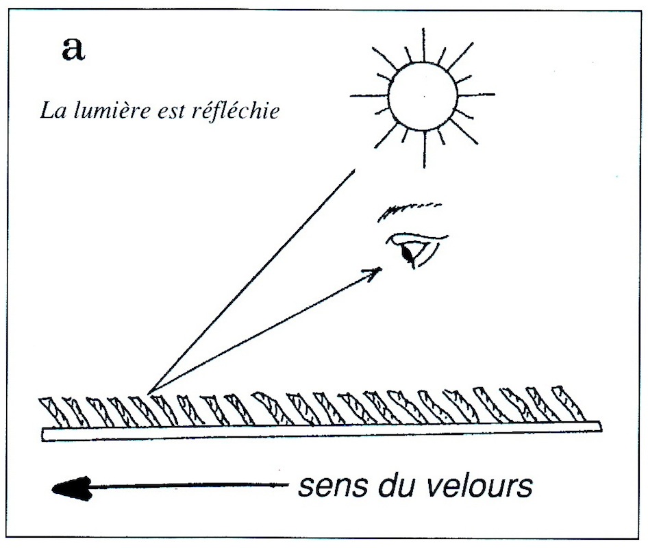 - Le velours est la surface même du tapis : généralement en laine, il est formé de courts brins que l'on noue autour de la chaîne. Les nœuds s'alignent sur toute la largeur du tapis en cours d'exécution, mais jamais dans le sens de la hauteur.